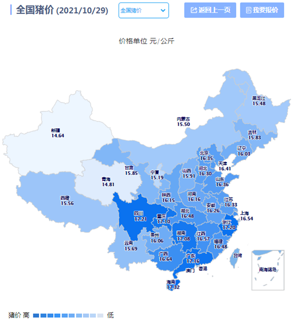 2021年10月29日(星期五),据猪价系统数据监测: