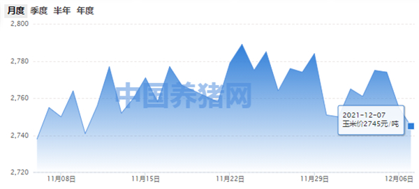相较上月(2021年11月07日)2755元/公斤,价格下跌10元/吨;