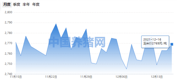 相较上月(2021年11月16日)2758元/公斤,价格上涨11元/吨;