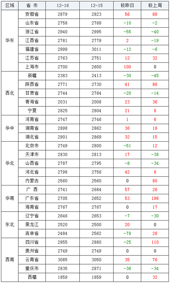 相较去年(2020年12月16日)2524元/公斤,价格上涨245元/吨。