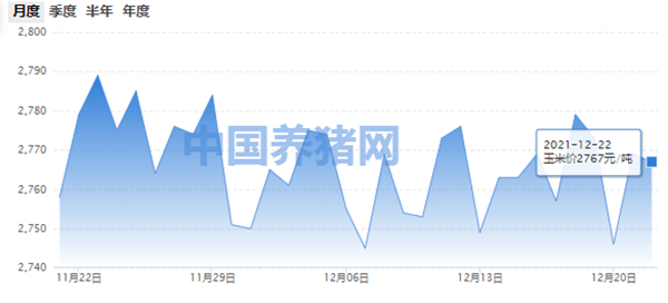 相较上月(2021年11月22日)2779元/公斤,价格下跌12元/吨;