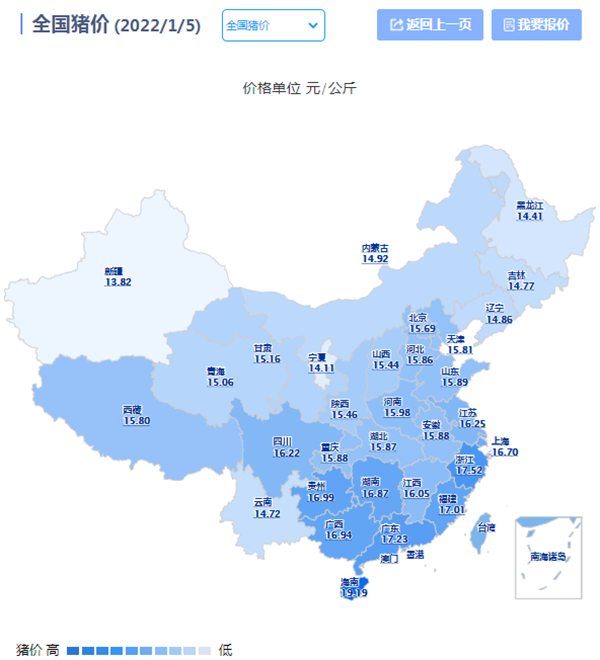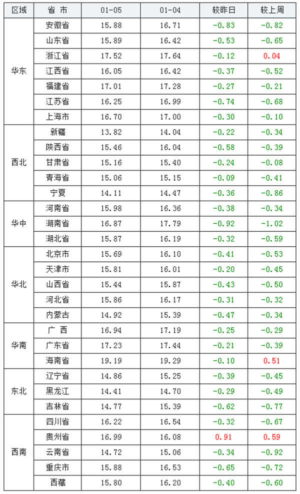 相较上周(2021年12月29日)16.47元/公斤,价格下跌0.46元/公斤;