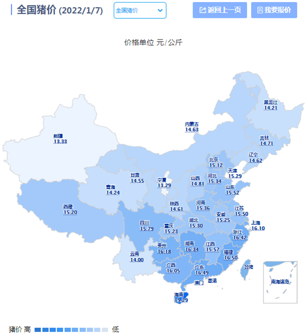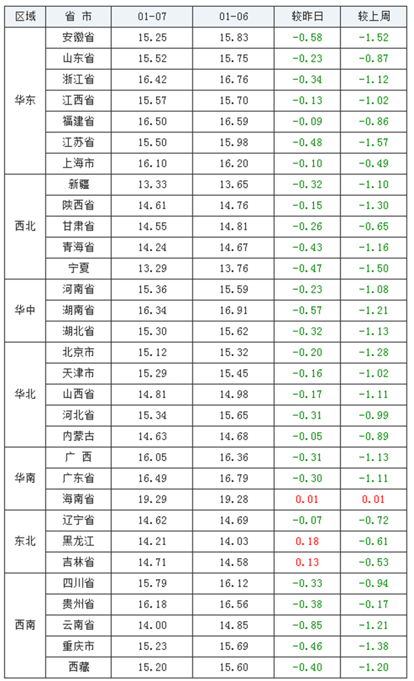 相较上周(2021年12月31日)16.48元/公斤,价格下跌1.07元/公斤;