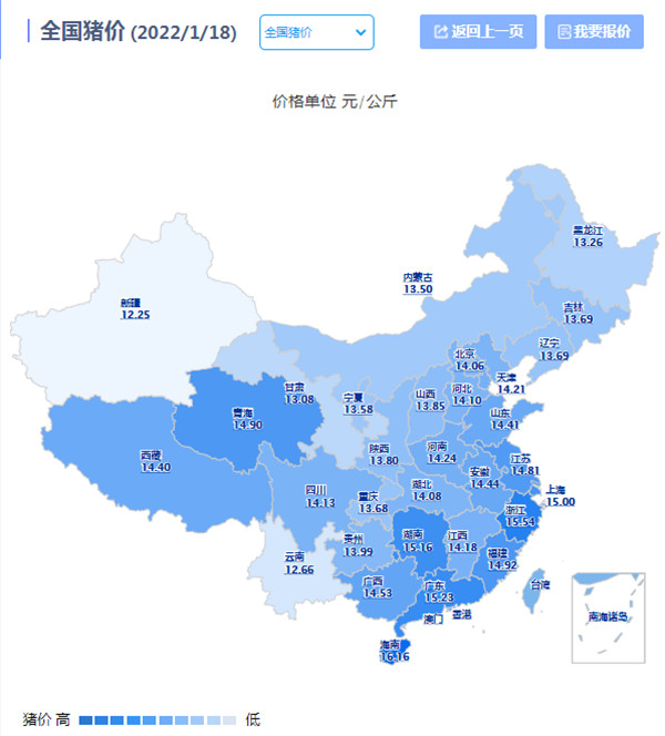2022年01月18日(星期二),据猪价系统数据监测: