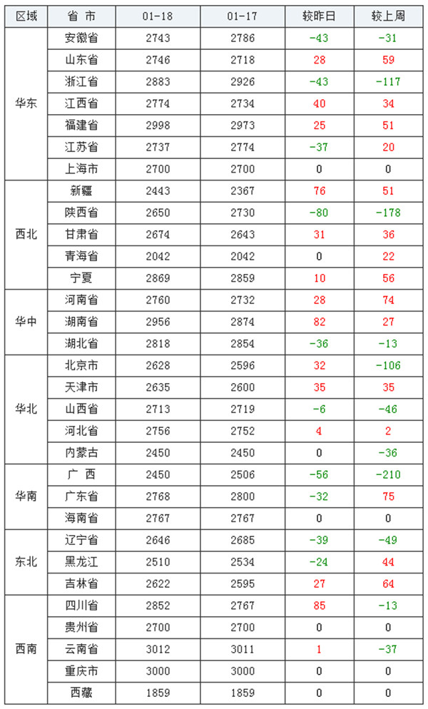 相较去年(2021年01月18日)2777元/吨,价格下跌51元/吨。