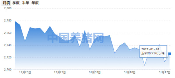 相较上月(2021年12月18日)2779元/吨,价格下跌53元/吨;