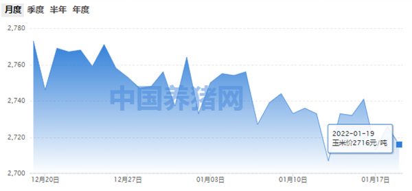 玉米(饲料原料)价格为2716元/吨;