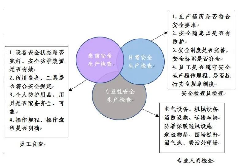 2.4.2 安全检查员检查。安全检查员定期检查安全制度是否完善,安全标识是否齐全,生产场所是否符合安全要求,员工是否遵守安全生产操作规程,是否执行安全规章制度,安全隐患点是否有防护。