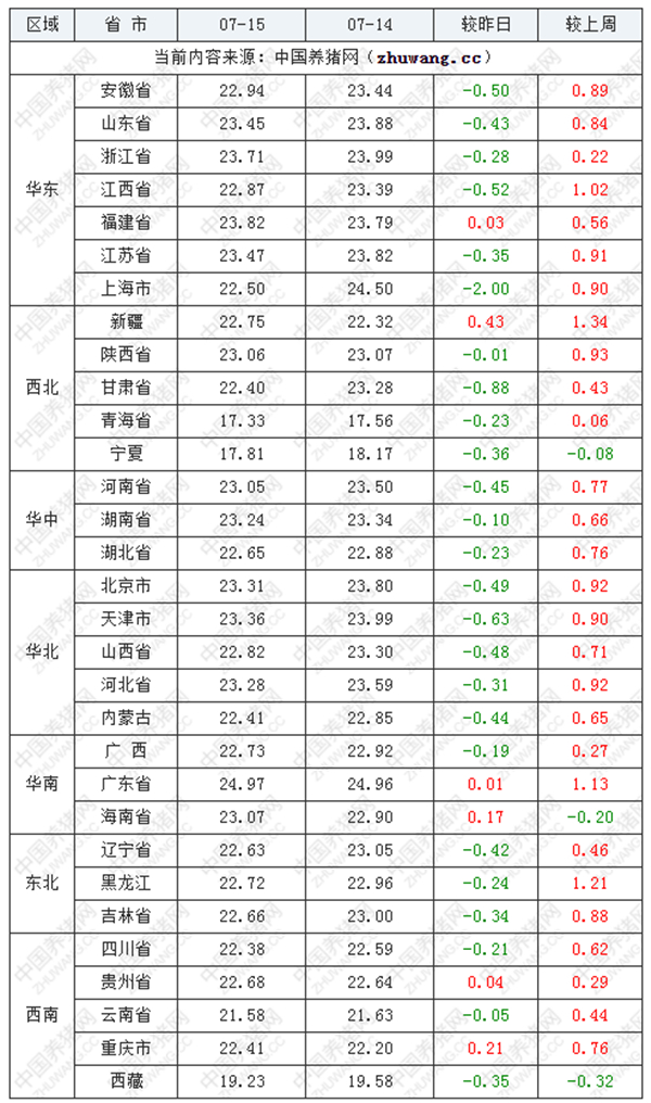 2022年07月15日(星期五),据猪价系统数据监测:
