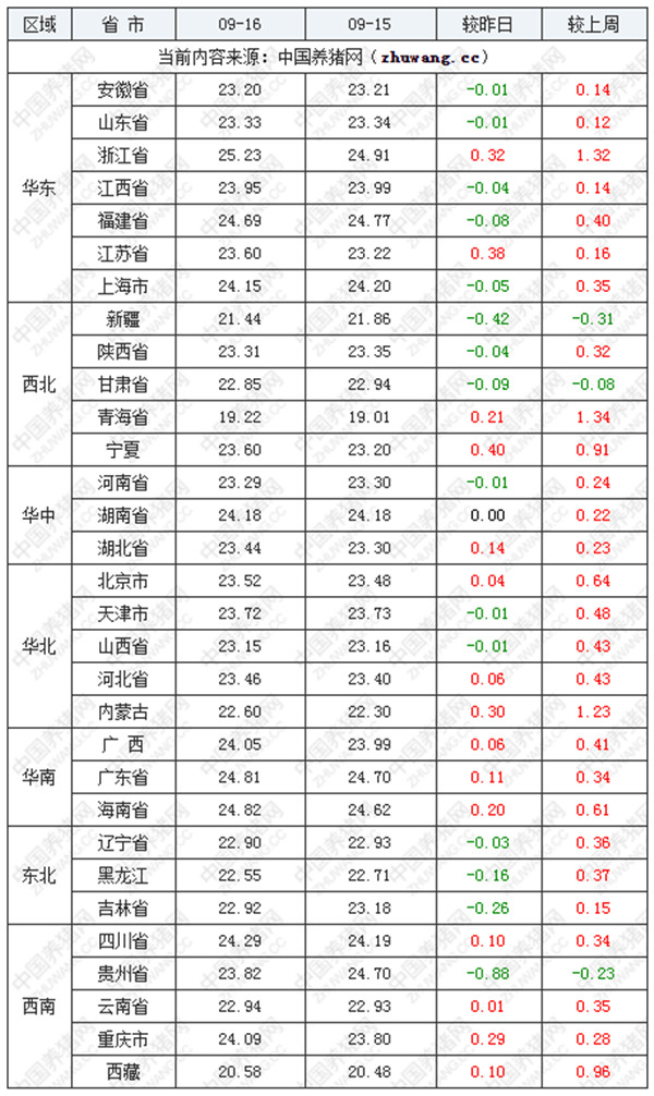 相较上周(2022年09月09日)23.34元/公斤,价格上涨了0.25元/公斤;