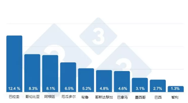 来满足国内需求。智利和哥伦比亚紧随其后,分别增长了756%和237%。进口量较低的国家,如巴拉圭和巴拿马,近年来进口量明显增加,进口量增加了414%和224%。另一方面,厄瓜多尔的进口一直在大幅减少,因此可以推断,该国国内电子游艺平台