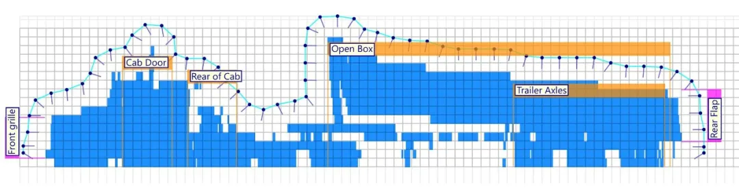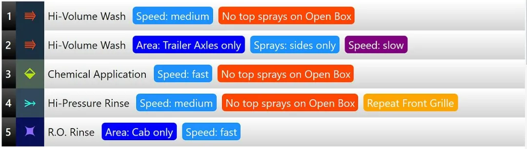 由于卡车有不同大小、长短和外形构造;卡车在进入洗消间之后会首先进行三维扫面,在计算机中对卡车的外形进行建模,然后依据该模型设定洗消路线,即使喷嘴尽可能紧贴卡车表面消毒,同时不会碰撞或刮擦卡车表面及凸起装置。洗消程序、参数可编程,设置完成之后洗消过程自动完成。