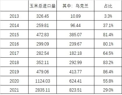 表2 2013-2021年乌克兰对华玉米出口量(万吨)
