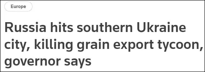▽乌克兰南部城市遭俄罗斯袭击,粮食出口大亨遭遇身亡