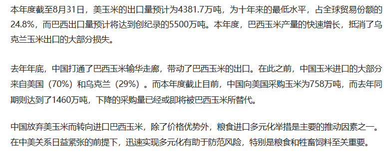 巴西第二次超越美国,成为全球第一大玉米出口国