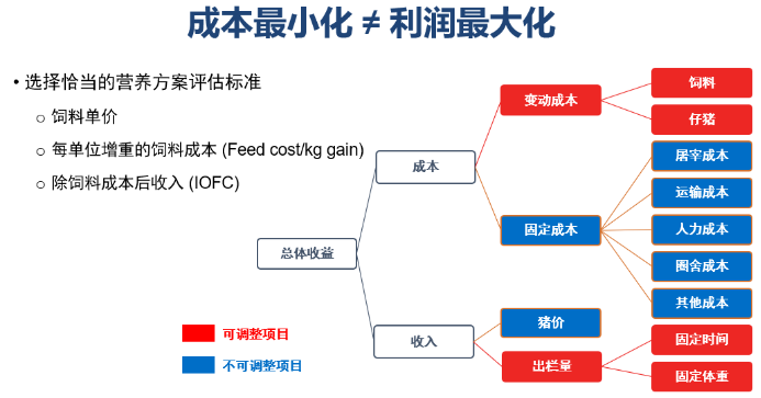 • 高猪价条件下,可考虑将生长速率最大化,容忍饲料成本适度增加
