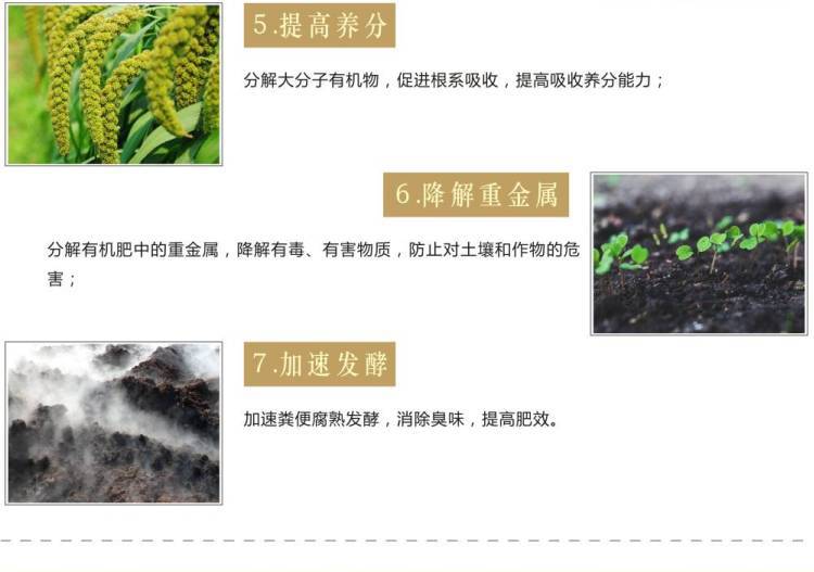 1.抑制有害病菌的生存与繁殖,减轻并逐步消除病虫害,并且可以抑制杂草的滋生。