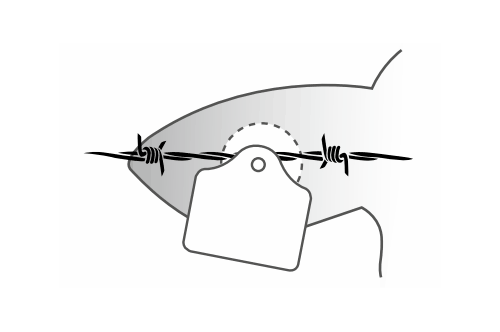 耳标的设计要符合动物的需求,为了避免动物在进食或其他动作卡在某个地方,拉拽耳朵而造成损伤,耳标能够自由转动非常重要。