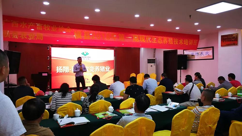 4月11日,由广西水产畜牧业协会、横县农业局主办,广西扬翔股份有限公司协办的“2018年第一期现代生态养殖技术培训班”在横县隆重举行。