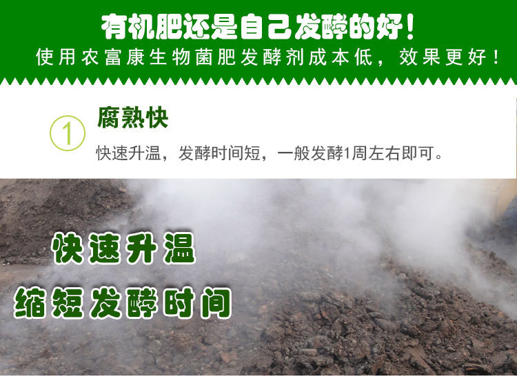 现在市场上用于发酵有机肥的发酵剂鱼龙混杂,销量比较好的微生物发酵剂是农富康生物菌肥发酵剂。农富康生物菌肥发酵剂是一款专门用于发酵菜籽饼、花生麸、红薯渣、秸秆、谷壳、稻草、各种粪便等有机质做有机肥料的微生物复合型发酵剂。因其内含多种具有特殊功能的放线菌和酵母菌等,这些菌经专门工艺发酵并复合在一起,相互协同,有其独特的优势。发酵2吨成品生物有机肥料只需用1包农富康生物菌肥发酵剂,废弃物均可变成绿色无公害生态肥料。农富康生物发酵剂不仅是有机肥厂、饲料厂、农牧厂、污水处理厂理想的发酵原料资源,还是乡村农户农民利用农闲时间在房前屋后、闲置宅院、田间地头均可制作肥料的理想选择。
