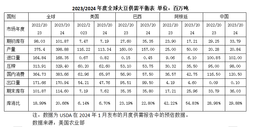总体看来,2024年全球大豆供需基本面正由偏紧向宽松方向过渡,国际大豆市场受基本面影响整体偏空,在南美大豆、美国大豆集中上市期价格将表现承压,价格重心较2023年或进一步下移。