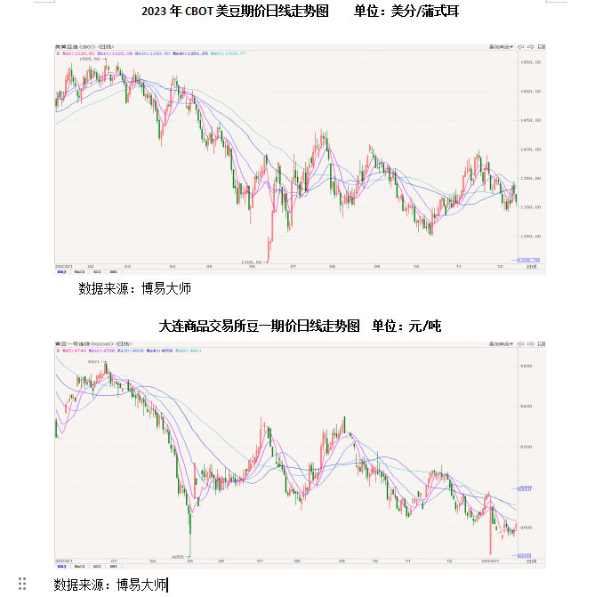 2023年,国内外大豆市场价格走势联动呈现先涨后跌、重心大幅下移的走势。