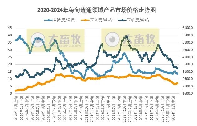 豆粕价格3329.7元/吨,环比减少89.4元,下跌2.6%,自2021年4月上旬以来最低价,也就是差不多近3年最低价。