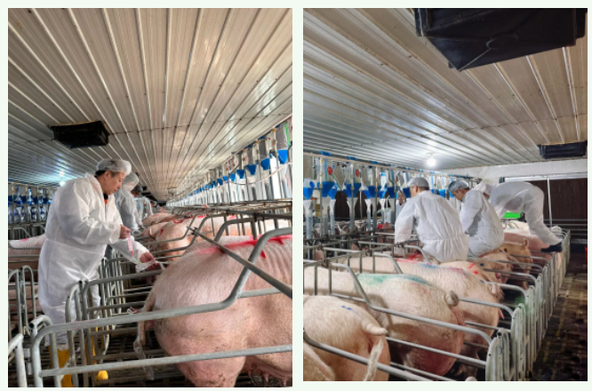 和秀博基因合作差不多有三年时间了,最开始只是试用部分,近几年使用下来感觉品质稳定、安全,现在已经全场使用秀博猪精了。并且此前自养的公猪也全部淘汰了,主要是基于批次化生产、疾病防控、人员节支以及降本增效等考虑。”余总表示。