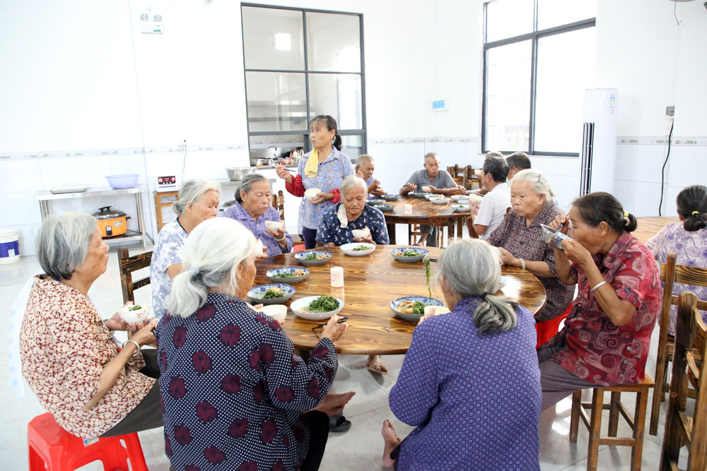 ↑东津镇冲口屯老年人到爱心食堂用餐(刘志宁摄)