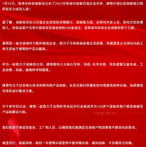喜报 | 建明中国入选“2022年珠海市创新百强企业”名单