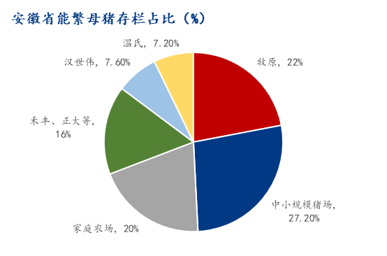 主要有大自然种猪场、蚌埠鹏睿农牧、安徽皖恒农业、安徽博农牧业和淮北高策农业等。母猪数量在2000头~3000头的电子游艺网站