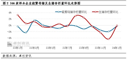 春节前后部分地方仔猪价格出现回暖,在一定程度上会使得短时供应有增加可能,但对主线供应量的影响或较小,仍要关注能繁母猪决定的主线基调。卓创资讯调研数据显示,自2023年5月份以来,能繁母猪存栏量呈持续下降态势,而根据能繁母猪后推10个月左右反馈到生猪出栏量上的规律来看,生猪实际可出栏量或处于持续减少状态。随着供应陆续减少,猪价磨底阶段或接近尾声。