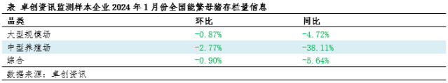 近年来规模化养殖主体占比逐步提高,散户占比正逐步降低。根据卓创资讯调研及监测数据,预估2023年能繁母猪2000头以上的企业生猪出栏量占比或达35%。由于近几年非洲猪瘟防控常态化,许多散户的生物防控技术不及养殖集团,在遭遇猪病侵袭时,集团往往具有更高的抗风险能力,且在近两年价格波动频繁,部分散户缺乏对未来市场行情的合理预判,导致养殖亏损的情况时有发生,尤其是2023年,散户因持续亏损而退市的情况较为普遍。从卓创资讯监测的规模样本企业能繁母猪存栏量走势来看,能繁母猪的环比降幅相对较小,反映出规模化养殖在应对疫病风险方面的优势。