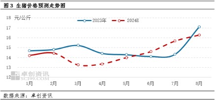 卓创资讯监测数据显示,近两年生猪年出栏500头以上的养殖场数量占比不断提升,到2023年时已占到近70%。其中年出栏1万头以上的养殖场占比呈提升态势,压缩500-10000头规模的养殖场占比。同时,规模较大的企业产能调整速度也发生变化,在后非瘟时代,猪价上涨时扩产较迅速,而在下行周期则去产能相对缓慢,甚至部分大型企业出现逆周期扩产的情况,所以在一定程度上延缓了去产能的节奏。但随着亏损时长的持续增加,部分企业的去产能速度或逐步加快。