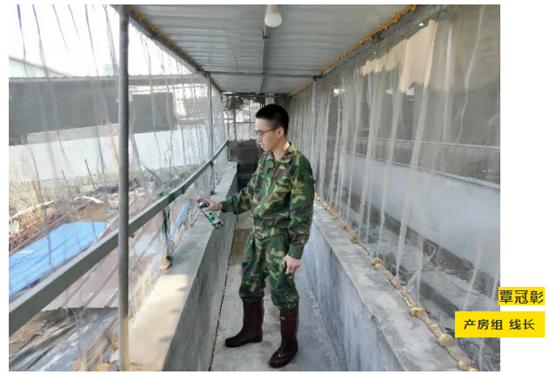 今年再次迎来特殊时期,形势严峻,卢华樑每天除了做好查情、配种等工具,还要协助防非工作,包括修补连廊,消毒、撒药等,但公司经过探索总结,已经形成了一套体系,今年根据公司发布的制度进行操作,工作起来简单多了。