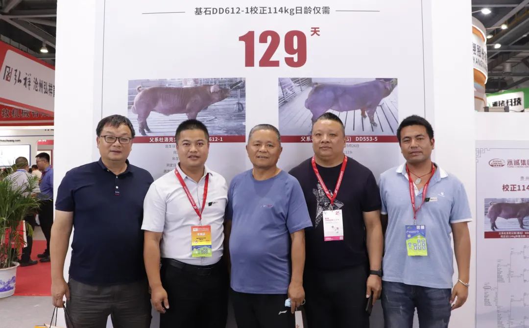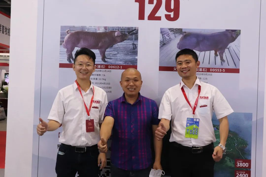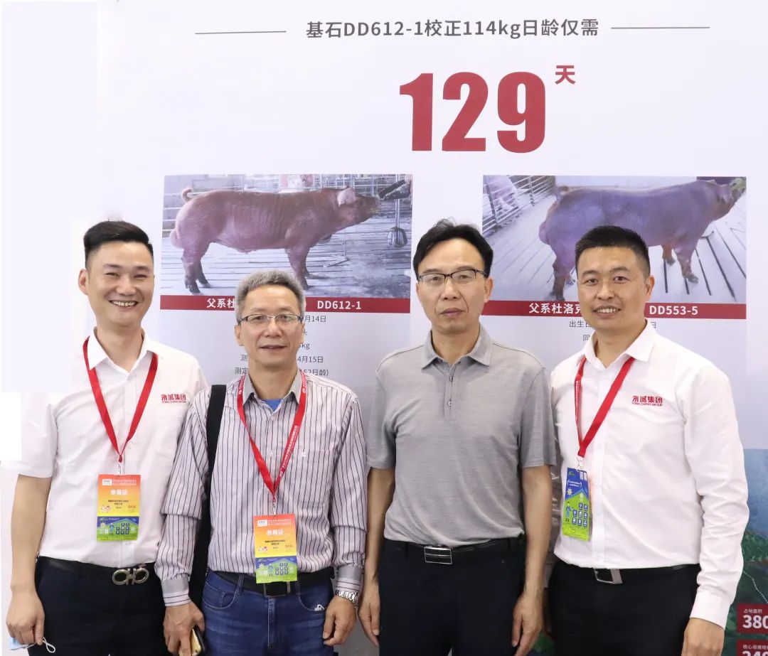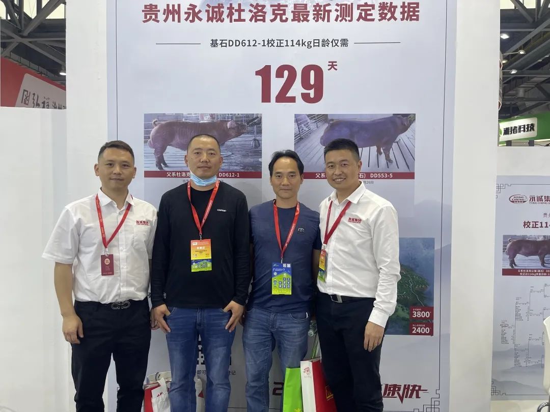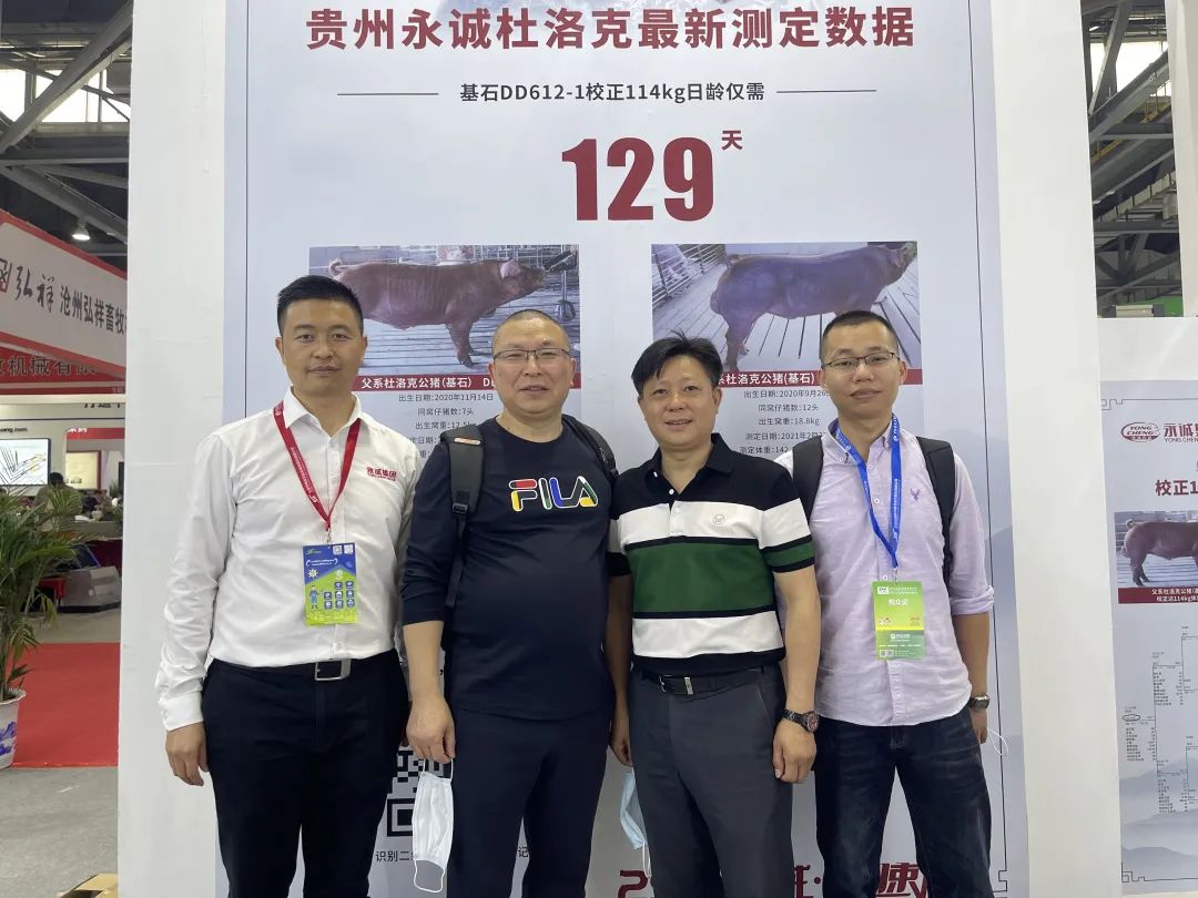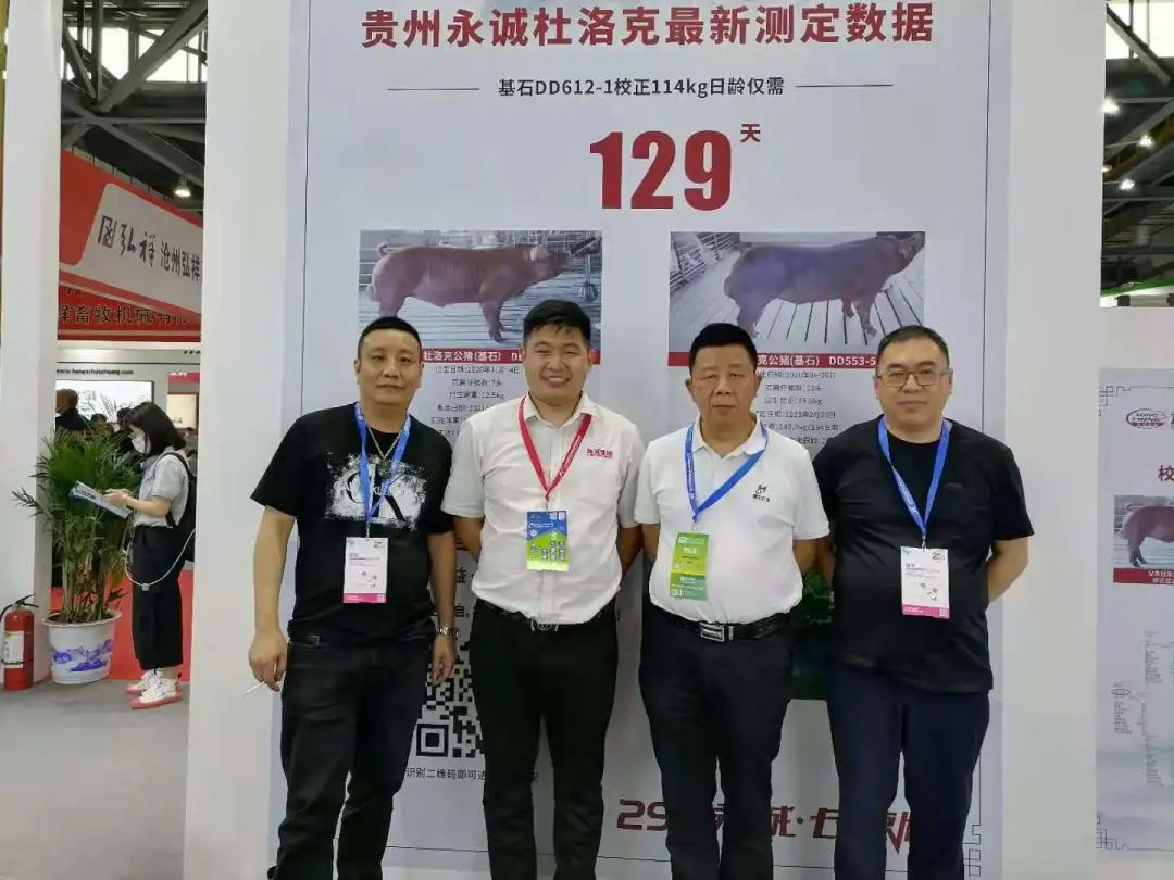 “129”意指贵州永诚最新测定数据DD612-1校正114KG日龄仅需129天。同时,贵州永诚2021年杜洛克种猪测定校正114kg日龄平均仅需146天。