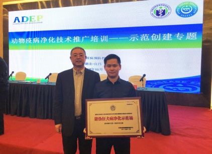 左:中国动物疫病预防控制中心辛盛鹏副主任,右:黄建斌总监