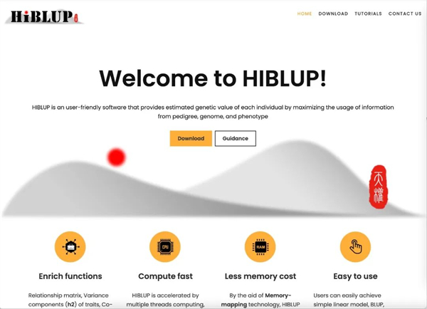 团队集成了全部成果,研发了“HiBLUP(天权)育种大数据处理平台”,该平台彻底摆脱了育种值计算核心专利FSPAK(美国)的限制,能够不依赖任何第三方软件包,独立开展基因组选种和基因组选配,目前升级到2.0版本。