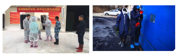 进场人员要严格按照流程,消毒、洗澡、隔离后进场。不断提高人员的防非意识和责任心,尽量减少外出,实行单向流动。