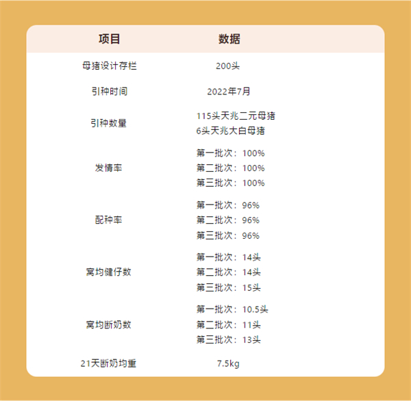 据杜老板反馈,此次引进天兆种猪的生产成绩同样令他非常满意。