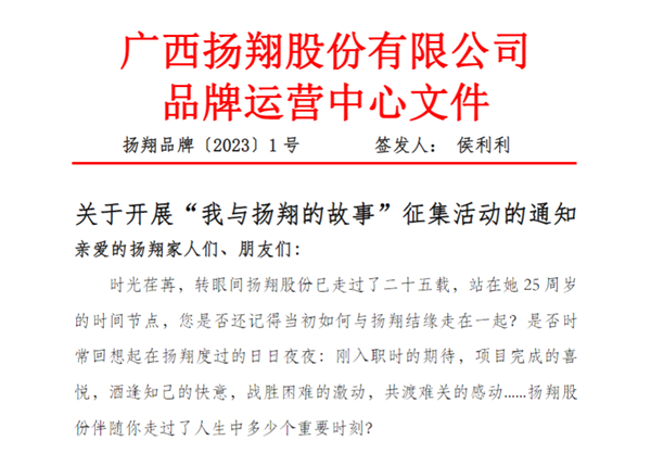 我们将于2023年9月1日—12月30日期间挑选部分故事进行创作并展示在扬翔股份官方新媒体平台上(扬翔股份视频号、扬翔股份抖音号、扬翔股份微信公众号),于2024年1月1日—30日对所有展示数据进行统计,并对每个平台总得分前三名的作品进行奖励。