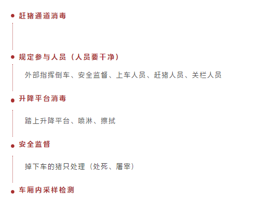 在整个引种过程中,猪只在运输过程中是与外界接触时间最长、最紧密的时候,也是最容易被疫病侵扰的时候,因此,要对司机运输过程中的行为严格要求。