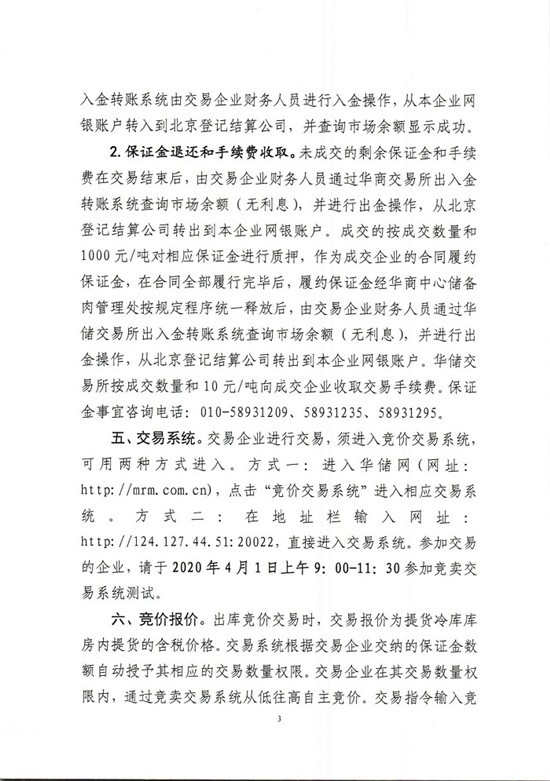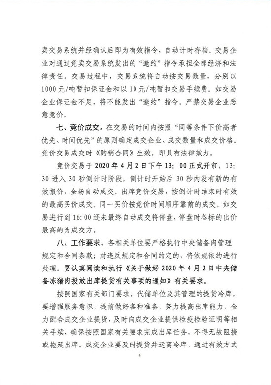 关于2020年4月2日中央储备冻电子游艺平台 投放竞价交易有关事项的通知