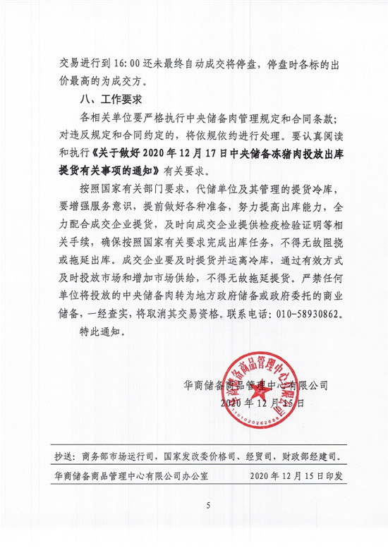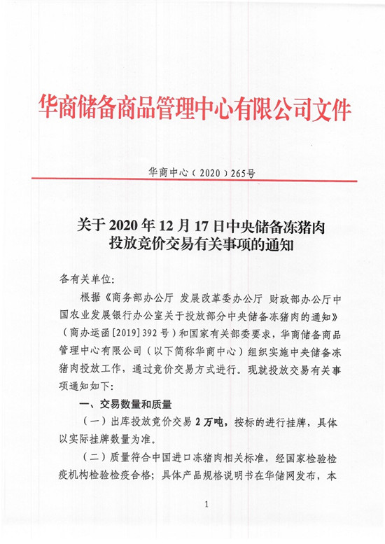 关于2020年12月17日中央储备冻电子游艺平台 投放竞价交易有关事项的通知
