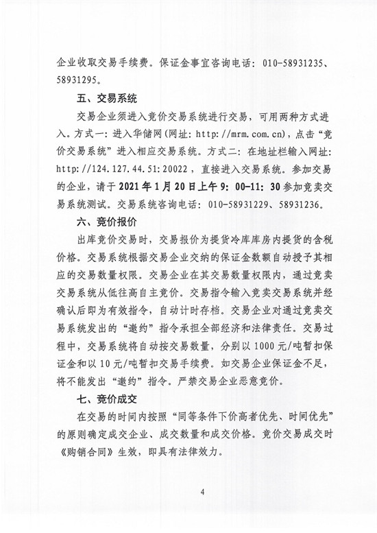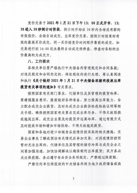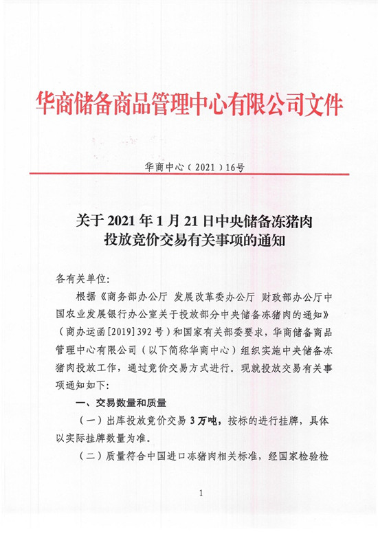 关于2021年1月21日中央储备冻电子游艺平台 投放竞价交易有关事项的通知