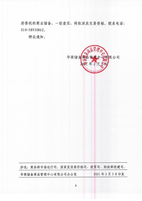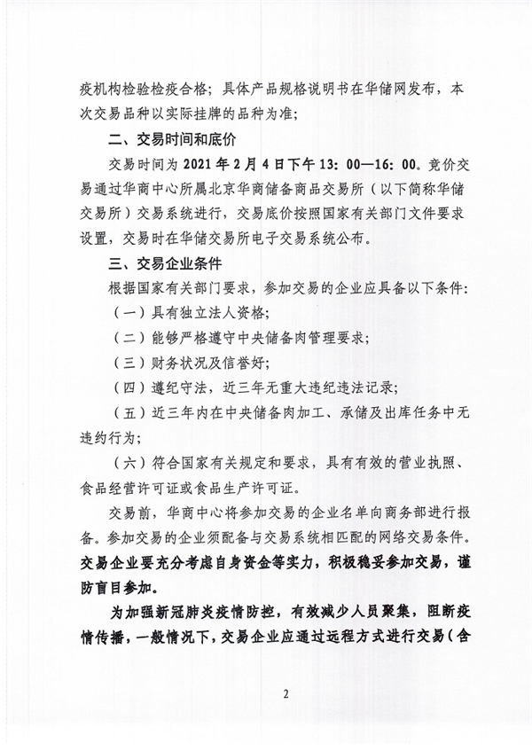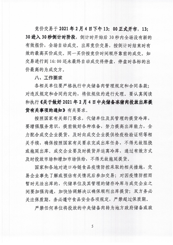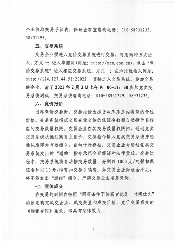 关于2021年2月4日中央储备冻电子游艺平台 投放竞价交易有关事项的通知