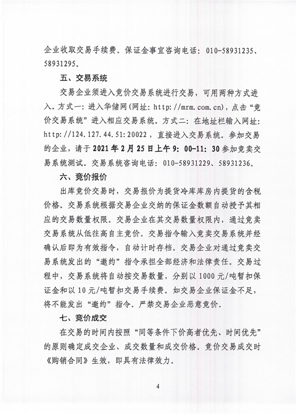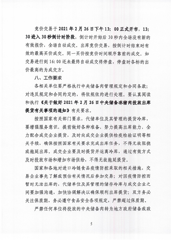 关于2021年2月26日中央储备冻电子游艺平台 投放竞价交易有关事项的通知