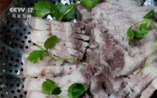 肉色红润,红白相间,既保留了土猪的口味,吃起来还不会觉得腻。