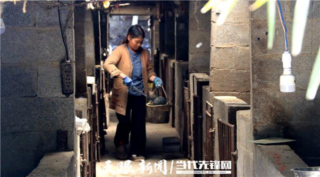 忙个不停,夫妻俩一个喂猪一个打扫圈舍。