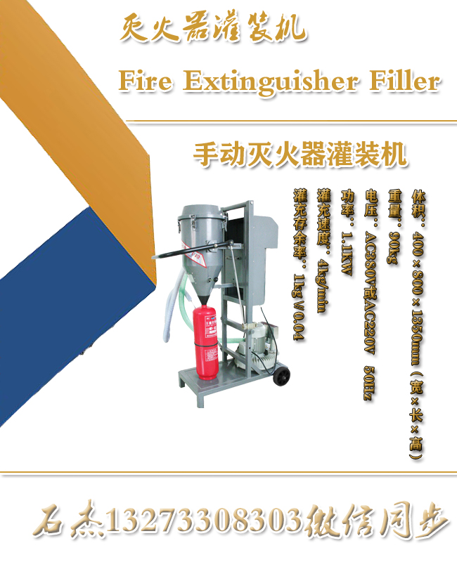 G:使用灌粉设备经过过粉通道和灌粉通道向灭火器瓶体内部进行灌粉,当灭火器瓶体内的干粉的量达到设定的值时停止;